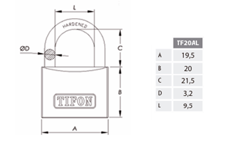 Candado IFAM serie TIFON cuerpo 20 mm. Arco Largo y Llaves Iguales (KA) - Código Llave 202