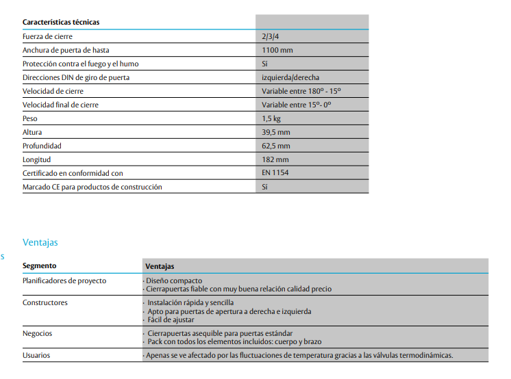 ∙ Certificado en conformidad con la normativa EN 1154 fuerza EN 2/3/4