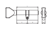Cilindro Sistema R6 40x40 mm PERFIL EUROPEO con POMO PLANO interior en el lado de 40 mm. y llave plana de latón niquelado con 6 pistones exterior. Terminación Niquelado, Leva E15